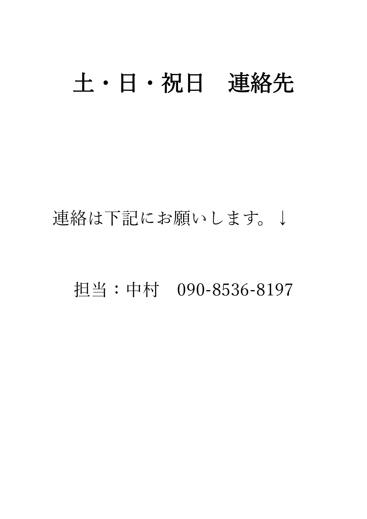 土・日・祝日 連絡はこちらまで